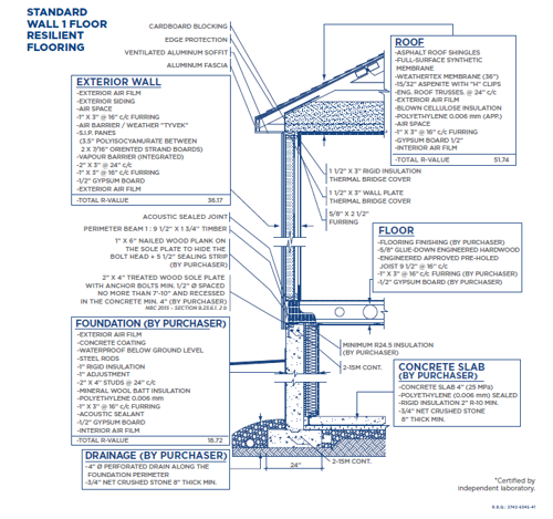 The walls of our homes stand out for their unique composition of Structural Insulated Panels (SIP) made from premium Canadian lumber, which has the advantage of making our homes energy-efficient.